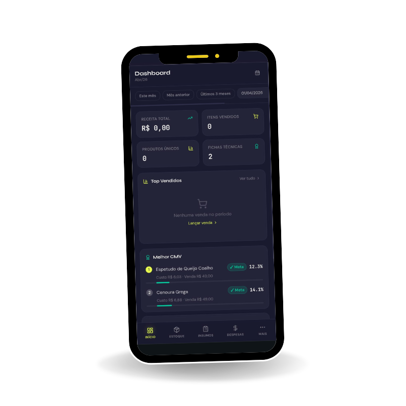 Importou o PDV, o CMV está calculado. Por categoria, por prato, por canal.